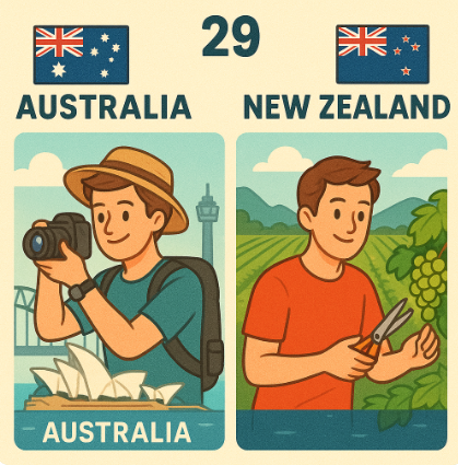 호주와 뉴질랜드는 29세 대한민국 워홀러가 선택할 수 있는 가장 현실적인 비자 대상국이다. 두 나라 모두 만 30세가 되기 전 신청할 수 있는 조건이 같지만, 비자 유연성, 일자리 수익성, 정착 환경에서 구조적 차이가 뚜렷하다. 특히 29세는 단기 체험보다는 언어 향상, 경력 활용, 수익 확보, 체류 연장 여부를 고려해야 하므로 단순한 감성이나 이미지보다 정보 기반의 선택 전략이 중요하다.